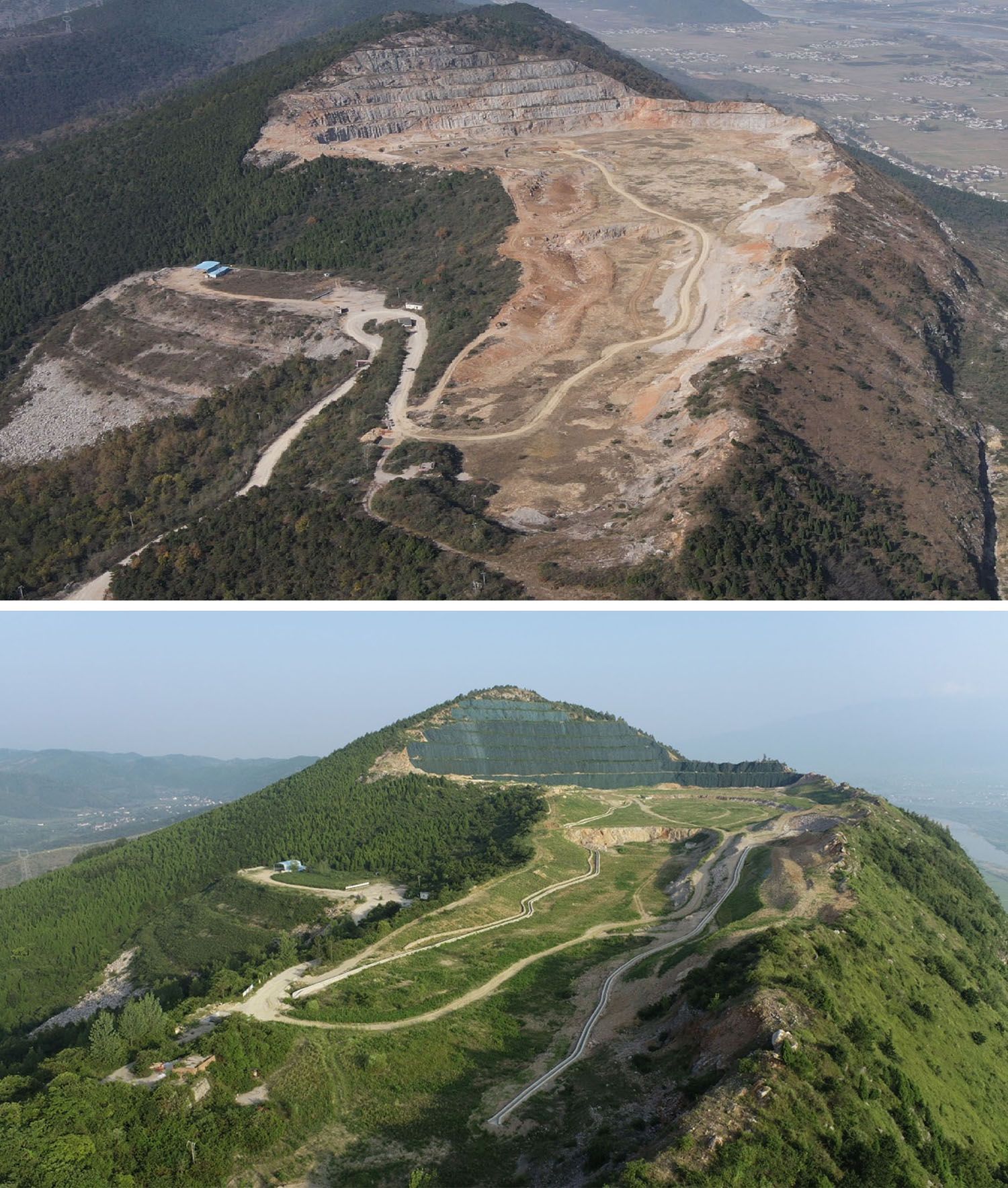 该项目使用生态长袋复绿、林灌草相结合立体栽植等核心工艺,完成治理总面积超20万平方米,配套建成完善的灌溉与防护体系,不仅彻底扭转了矿区生态恶化态势,更以持续稳定的治理成效,成为汉中市露天矿山修复领域的典型范例,社会济效、环境效益与经济效益日益凸显。
