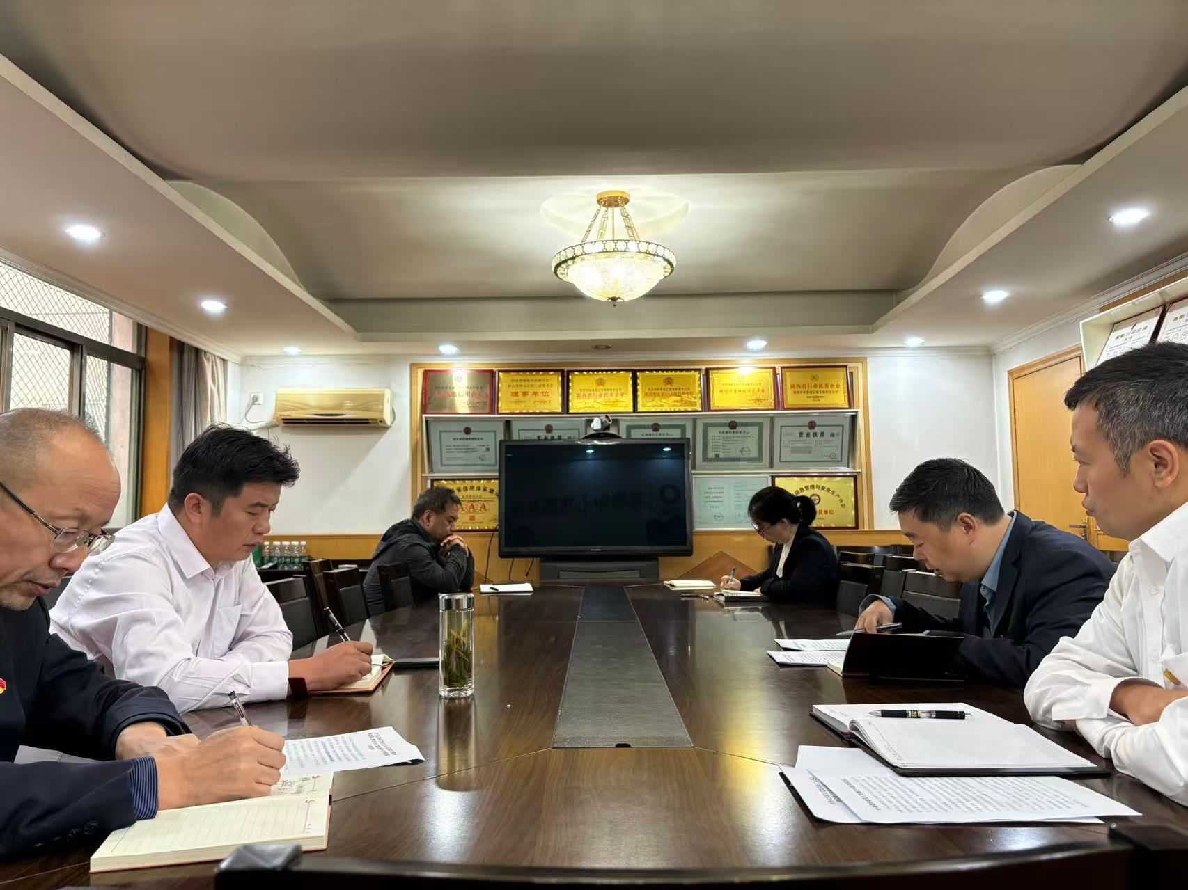 9月22日,陕西总队召开党委专题(扩大)会议,传达学习习近平总书记关于深入贯彻中央八项规定精神学习教育的重要指示精神,学习贯彻中央党的建设工作领导小组会议精神和国务院国资委党委扩大会议暨党建工作领导小组会议精神、中国建材集团党委常委专题(扩大)会议精神,全面总结总队学习教育的成效与经验。对巩固拓展学习教育成果、推进作风建设常态化长效化进行研究部署。党委副书记、副总队长李向阳主持会议并报告深入贯彻中央八项规定精神学习教育总体情况,领导班子成员交流发言。